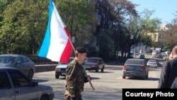 Представители «самообороны» сорвали флаг Украины со здания Меджлиса крымскотатарского народа Симферополе.