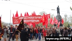Симферополь – В первый день мая в Крыму состоялось несколько первомайских демонстраций – две в Севастополе, одна в Симферополе, прошли демонстрации и гуляния в городах и районных центрах. Их участники и сторонние наблюдатели отмечают важную особенность – в Крым возвратился советский стиль празднования Первомая.
