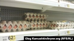 Как сообщает корреспондент Крым.Реалии, больше всего бросается в глаза нехватка мясных продуктов. Холодильники с мясом стоят полупустые, а свинину в магазин вообще не завезли.