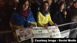 У Королевского Альберт-холла, где проходил концерт, зрителей встречали две группы протестующих, расположившихся по обе стороны входа в зал. В одной группе десятки людей с украинскими флагами скандировали антипутинские лозунги, в другой им вторили живущие в Лондоне россияне. В руках у протестующих были плакаты с лозунгами на английском языке: "Путинские марионетки, вон из Лондона!", "Позор Альберт-холлу!", "Валерия, отправляйся домой!", "Нет кровавому концерту!", "Путин – это война". Акция протеста была организована украинским "Лондонским Евромайданом" и правозащитной организацией русскоговорящих британцев "Говорите громче!". Они развернули широкую кампанию протеста, призывая британское правительство и администрацию Альберт-холла запретить выступление артистов, поддерживающих российскую агрессию против Украины.