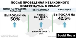 Экономика полуострова за год претерпела существенные изменения. Торговые связи с Украиной стремительно разрушались. Учитывая, что более 90% товаров поставлялось именно с материковой Украины, новые границы заметно повлияли на цены в Крыму.