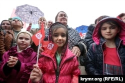 Рядом с ней стоит девушка, которой на вид 17-18 лет, на ее глазах слезы. Она не желает верить в то, что с 1 апреля телеканалы ATR, Lale, радиостанции «Мейдан» и «Лидер» перестанут вещать.