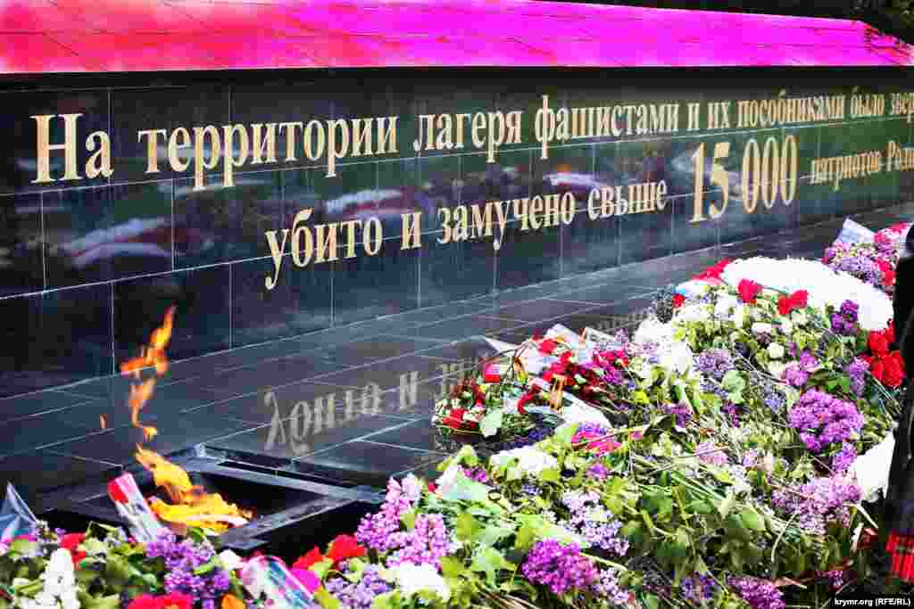 8 мая в поселке Мирном под Симферополем торжественно открыли мемориал, посвященный памяти жертв концлагеря «Красный», в котором гитлеровцы во время оккупации Крыма уничтожили больше 15 тысяч советских патриотов. В эти дни в музее проводится свободное посещение всех объектов и бесплатные экскурсии, постоянно демонстрируется фильм о годах войны. За несколько дней мемориал посетили несколько тысяч человек. Они возлагают цветы к вечному огню, звонят в колокол памяти, кладут игрушки к подножию скульптуры «золотой девочки» – памятника всем детям. погибшим в концлагере.