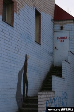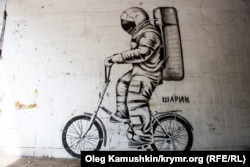 И особняком от всего предыдущего идут работы Шарика, которого называют «крымским Бэнкси». Их можно смело отнести к жанру осознанного творчества, которое не просто радует прохожих, а заставляет задуматься о посыле, который передал художник.