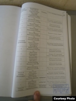 Фото списка попало в редакцию Крым.Реалии. В списке также значится имя Александра Костенко, который в ходе громкого дела в Крыму за «избиение» «беркутовца» на Майдане по представлению российского прокурора Поклонской уже осужден к 4 годам и 2 месяцам тюрьмы.