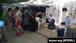 Родители, которым «посчастливилось» снаряжать детей в школу в российском Крыму, ходят от одного киоска к другому – прицениваются. Женщина с длинным списком необходимого записывает цены на каждую позицию. Кроме канцтоваров, формы и ранца в перечне – банты, гольфы, колготки.