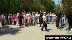 Время уже перевалило за 13:00, но Путин так и не появлялся. Толпа явно начала скучать, но тут нарисовался изрядно запыхавшийся и вспотевший вице-губернатор Севастополя Евгений Дубовик. Он подошел к забору, «козырнул» чиновничьим удостоверением и попытался пройти в «запретную зону». И ему это даже удалось, но метров через 30 Дубовика настиг один из «охранников в штатском», который, приобняв севастопольского чиновника, порекомендовал ему вернуться за забор и наблюдать за визитом президента России вместе с остальной «челядью». Дубовик повиновался, но еще долго пытался кому-то звонить, выяснять причины столь дерзкого обращения, но, судя по всему, ничего у него не вышло.