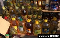 Также на рынке «Привоз» пока имеется в продаже растительное масло украинского производства.