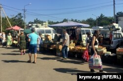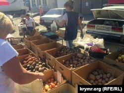 Симферополь – В ответ на гражданскую блокаду Крыма, которая длится уже почти неделю, местные власти решили провести ярмарку нового урожая. В двух района Симферополя: по улице Залесской и на Москольце крымские товаропроизводители выставили свою продукцию. Однако ассортимент товаров оказался не таким широким, как предполагалось. В частных беседах продавцы жалуются на низкую покупательскую способность симферопольцев. Крым.Реалии отправились на одну из ярмарок.