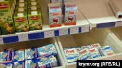 Эволюция крымской действительности более наглядно. Слева сыр «Российский» украинский, справа – «Российский» российский, то есть «Молочная долина» – это украинский бренд, «Добряна», соответственно, российский. Стоимость украинского сыра – 348 рублей за килограмм (125 гривен), российского – 579 рублей килограмм (208 гривен). За качество украинского ручаюсь, российский, если честно, не пробовал. Пока есть в продаже украинский сыр, на российский меня почему-то не тянет.