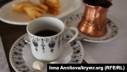 В 10 утра здесь уже сделали заказ первые посетители, а в воздухе витает аромат кофе. Это маленький кусочек Бахчисарая в просыпающемся, суетном Киеве, не хватает только пейзажа крымской степи за окном.