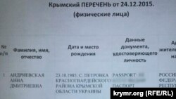 «Крымский перечень», отправленный в почтовые отделения полуострова, датирован 24 декабря 2015 года.