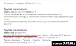 Когда информация о крымских гастролях «Resonance» появилась в СМИ, с сайта группы исчезли упоминания об этом. Сначала удалили информацию о концерте в Керчи, а затем в Севастополе. Копия последнего сохранилась в кэше Google.