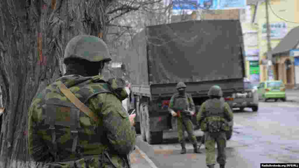 Оккупация и сопротивление. Хроники: Российские военные на улицах Симферополя (фотогалерея)