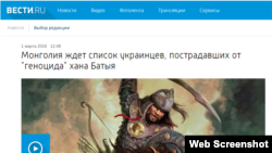 «Информация о том, что Украина требует от Монголии компенсацию за разрушение Киева войсками Батыя в XIII веке, которая появилась в медиапространстве в мае 2015 года, оказалась не шуткой. Монгольские дипломаты официально подтвердили: украинская власть требует компенсации за нашествие хана Батыя и разрушение Киева татаро-монголами», – рассказали во вторник «Вести.ру».