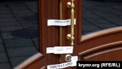 Корпус закрыт, курортников нет. Старинная бронзовая ручка, на бумажках печать, где слово «Гурзуфський» написано еще по-украински.