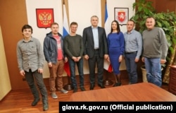 Сергей Аксенов провел очередную расширенную встречу с крымскими журналистами. На этот раз глава Крыма, назначенный Кремлем, собрал в Совмине представителей крымских и российских информационных агентств. Крым.Реалии проследили, о чем спрашивали его журналисты и какие важные вопросы заданы не были.