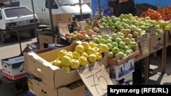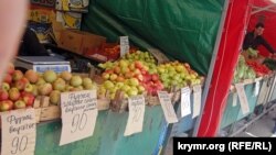 Огурцы только вот производства «Крымтеплица» да яблоки местные.
