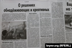В материале «О решениях обнадеживающих и креативных» «Крымская правда» вновь вспоминает знаменитую фразу российского премьера о том, что «денег нет», произнесенную им во время пребывания в Крыму. «Дмитрий Медведев, удививший всех своим высказыванием о том, что денег на пенсии нет, кажется, решил реабилитироваться. На прошедшем недавно совещании по вопросам поддержки отдельных категорий граждан он сообщил о том, что правительство рассматривает возможность проиндексировать пенсии в следующем году. Новость эта не имела такого резонанса, как заявление о том, что «денег нет», но «держаться здесь» с ней стало как-то легче», – отмечает газета.