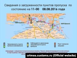 Последние данные подконтрольной России крымской таможни о загрузке пунктов пропуска.