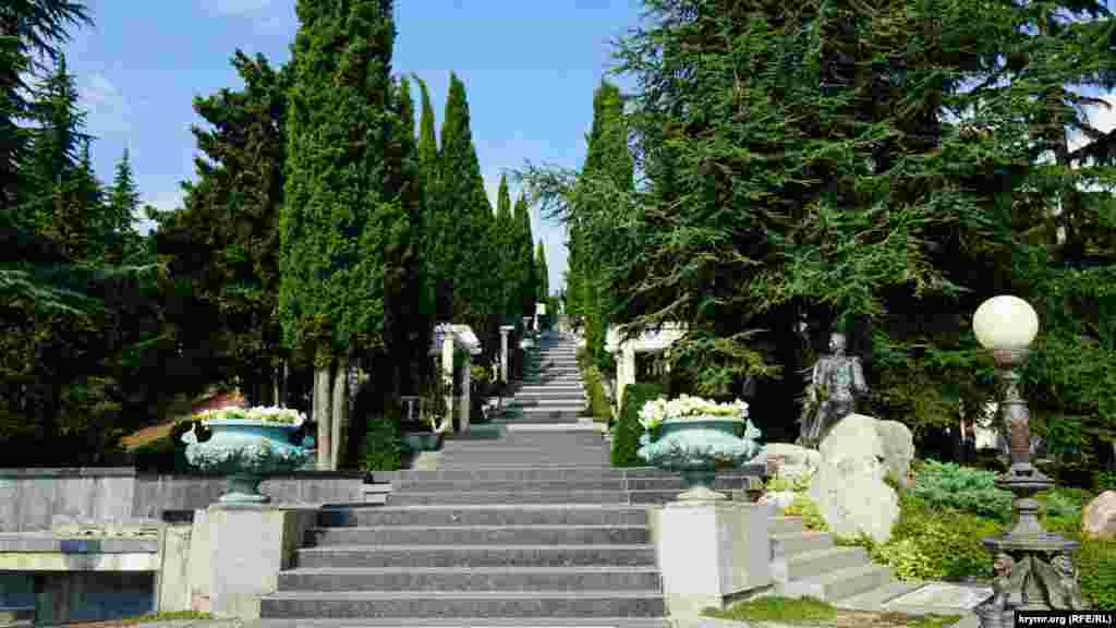 К авторству этих мастеров относят, в частности, роскошную лестницу в античном стиле, по которой люди спускаются к пляжам санатория. Лестницу назвали в честь генерала Николая Раевского, которому когда-то принадлежало имение в Партените и соседнем Карасане