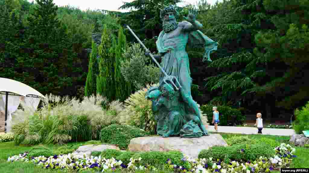 Бронзовые и мраморные статуи древнегреческих божеств, заказанные в Италии, размещены по всему парку. Величайшей представляется фигура бога морей Посейдона на набережной