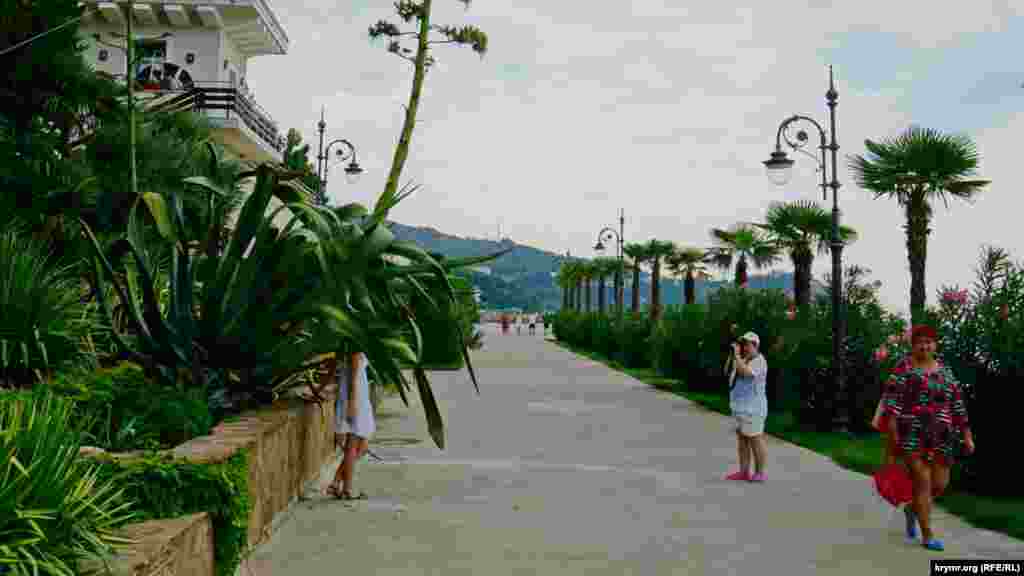Высокие агавы на специальных растяжках, нависшие над набережной