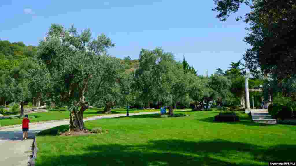 Настоящее достояние парка ‒ оливковая роща в античном саду. Все 26 олив плодоносят и ежегодно дают около двух тонн товарных плодов. Самому саду более 200 лет.