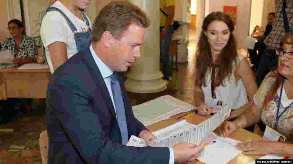 ВРИО губернатора Севастополя Дмитрий Овсянников на избирательном участке города