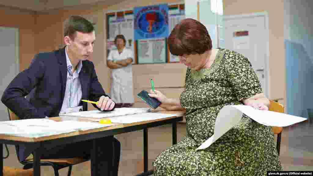 Подконтрольный России глава Крыма Сергей Аксенов на избирательном участке в школе №10 в Симферополе
