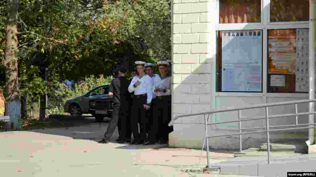 На избирательный участок №80 «Театр юного зрителя» в Севастополе курсанты шли колоннами в сопровождении своих непосредственных начальников