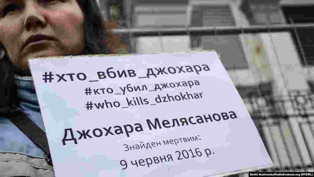 Активисты общественной инициативы «КрымSOS» совместно с участниками крымскотатарского национального движения провели у здания посольства России в Киеве акцию в поддержку пропавших без вести в Крыму. Активисты, пришедшие на акцию, выстроились у посольства, держа в руках плакаты с именами жертв насильственных исчезновений на полуострове.