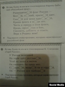 Волонтер Галина Однорог получила сообщение, в котором нашла фото задания по русскому языку для третьеклассников мариупольской школы. Текст упражнения прославлял и превозносил Россию и ее государственные символы.