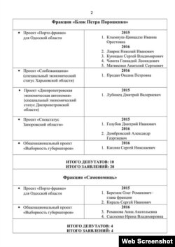 Украинские СМИ в четверг опубликовали документ из так называемого взломанного почтового ящика советника президента России Владислава Суркова. В нем, в частности, анализируют, сколько украинских депутатов поддержали различные «автономистские» проекты в 2015-2016 годах. Первый в списке ‒ «Порто-франко». А дальше: проект «спецстатуса Запорожской области», проект «Днепропетровская экономическая автономия», проект «Слобожанщина».