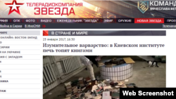 Сайт российского канала Минобороны «Звезда» вышел с заголовком: «Изумительное варварство: в Киевском институте печь топят книгами».