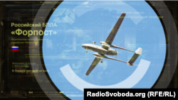 Российский беспилотный летательный аппарат «Форпост». Лицензионная копия израильской разработки «Поисковик». Основная задача ‒ ведение воздушной разведки. Может использоваться для наведения и корректировки огня артиллерии. Размах крыла «Форпоста» ‒ 7 метров, длина аппарата ‒ 5 метров. Действует на расстоянии более двухсот километров. Выпускают в России с 2012 года. В Украину поставок не было.
