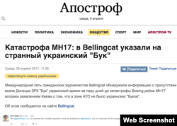 5 апреля издание «Апостроф» вышло с заголовком: «Катастрофа MH17: в Bellingcat отметили странный украинский «Бук».