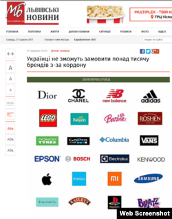 Российские и украинские издания распространили в среду сообщение, что якобы украинская таможня может «заблокировать» более тысячи известных брендов.