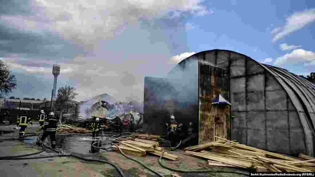 В Броварах под Киевом 5 июня загорелись склады с пиломатериалами на территории бывшей оптовой базы. По данным пресс-службы ГСЧС, горели два отдельно стоящие складские помещения на территории около 1500 квадратных метров. Жертв и пострадавших нет. Пожар тушили 40 человек личного состава с помощью 10 единиц техники.