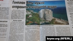 «Крымская правда» в статье «Генплан Ялты нужно отправить в мусорное ведро» рассказывает, почему нынешний глава Крыма Сергей Аксенов негативно воспринял проект документа. Аксенов возмутился, что документ предусматривает расширение зон жилой многоэтажной застройки. Земля для бетонных свечек найдется за счет уменьшения санаторно-курортной и парковой зон.