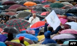 3. Папа римский Франциск разговаривает с паствой во время своей еженедельной аудиенции на площади Святого Петра в Ватикане в мае 2013 года.