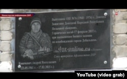 «На входе одной из школ Донецка усилиями батальона «Легион» появилась мемориальная доска, посвященная бойцу-герою так «Новороссии», который погиб при освобождении города Дебальцево...» – рассказывают в телесюжете. Кадры с таких мероприятий – частое явление на телевидении оккупированной части Донбасса.