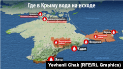 Российские власти признали: в Крыму – серьезные проблемы с водообеспечением. Этот вопрос стал предметом обсуждения в Совете безопасности России в июне. А на днях пути решения проблемы искал министр природных ресурсов и экологии России Сергей Донской. В первую очередь чиновники заявляют о необходимости налаживания водоснабжения крымских заводов украинского бизнесмена Дмитрия Фирташа. Но названы и регионы, где дефицит воды ощущают местные жители.