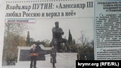 «Крымские известия» сообщают об открытии в Ливадии памятника российскому императору Александру III. «У России только два союзника: ее армия и флот» – это крылатое выражение Александра III актуально и сегодня. Он остался в истории Отечества как царь-миротворец. За 13 лет его правления Российская империя не вела ни одной войны», – подчеркивает газета. В торжественной церемонии открытия памятника приняли участие президент России Владимир Путин, а также представители нынешней крымской власти. «Пообщаться с Путиным смогли приехавшие на церемонию студенты крымских вузов. Студентка 3-го курса факультета журналистики Севастопольского филиала МГУ Полина Левченко призналась, что хотела бы издать сборник повестей, рассказов, стихотворений, в которых упоминается Александр III. Путин поддержал инициативу и пообещал свою поддержку», – отмечают КИ.