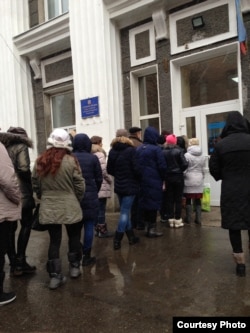 На следующий день я была свободна и отправилась на улицу Пушкина. Пришла неудачно – в 11:00. Перерыв начинался в 12:00 и к 12:00 я приблизилась только ко входным дверям администрации. Само ожидание не было стрессовым – люди стояли терпеливо, очередь двигалась, только людей было очень уж много – весь Луганск. В 12:00 я была счастлива оказаться за порогом, но внутри было не чуть ни теплее, чем снаружи, и час обеденного перерыва мы ждали переминаясь с ноги на ногу – погода была декабрьской во всех смыслах. За время обеденного перерыва кто-то побежал купить в киоске рядом кофе и грел руки о стаканчик.