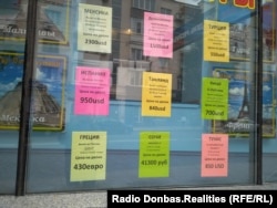 На улицах города все чаще можно увидеть рекламные объявления о поездках на российские и украинские курорты. Конечно, в сторону России – больше. Это Сочи, Анапа, Краснодар, Геленджик, а также оккупированный Россией Крым. Однако перевозчики также предлагают дончанам посетить Святогорск, Славянск и Мариуполь (это подконтрольная правительству Украины часть Донецкой области), Бердянск, Херсон, Николаев, Одессу.