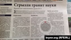 «Крымская газета» в материале «Сгрызли гранит науки» рассказывает о сдаче крымскими школьниками российского единого госэкзамена. О предварительных итогах рассказала подконтрольный Москве министр образования, науки и молодежи Крыма Наталья Гончарова. По ее словам, в этом году крымчан, которые по тем или иным причинам не сдавали государственную итоговую аттестацию в основной период, было более 700. Результаты экзаменов по основным и обязательным предметам – русский язык, математика базовая и профильная, химия, история, география – уже подведены. Ожидаются результаты по обществознанию, биологии, физике и русской литературе. «По предварительным результатам, у нас есть девять 100-балльников по русскому языку и по химии, – сообщила Наталья Гончарова. – Двое молодых людей из Джанкоя и Симферополя получили наивысший бал по химии, семь человек из Армянска, Евпатории, Керчи и Симферополя – по русскому языку». «Эти результаты – заслуга не только учеников, но и их преподавателей. Министр образования отметила, что в следующем учебном году во главу угла ставится работа с учителями химии, биологии, истории и обществознания», – пишет газета.