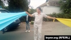 «Это мои воспоминания. Я с пяти лет понимал, почему я родился в Узбекистане: мне дедушка с бабушкой рассказывали. Отцу было 9 лет, когда его выслали из Крыма. Все это, мои воспоминания, история нашего народа – все в этом флаге», – говорит член местного меджлиса поселка Новоалексеевка Риза Мевлютов, держа в руках два маленьких крымскотатарских флажка.