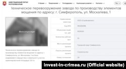 Об инвесторе, деятельность которого поручил расследовать Аксенов, Крым.Реалии уже писали. В 2015 году по решению крымского Совета министров 3 гектара территории «Крымжелезобетона» по улице Москалева, 1 отдали в аренду на 19 лет симферопольскому ООО «Стройкомплект». Компания обязалась «провести техническое перевооружение завода» и вложить в проект 45 миллионов рублей. Информацию об этом можно найти в реестре инвестпроектов Крыма.