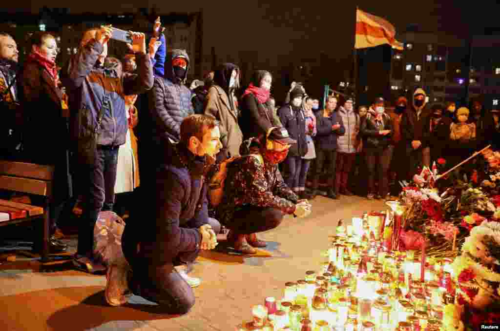 12 ноября в Минске после сообщения о смерти в реанимации белоруса Романа Бондаренко, на «Площади Перемен» начали собираться неравнодушные белорусы. Они несли цветы и свечи.
